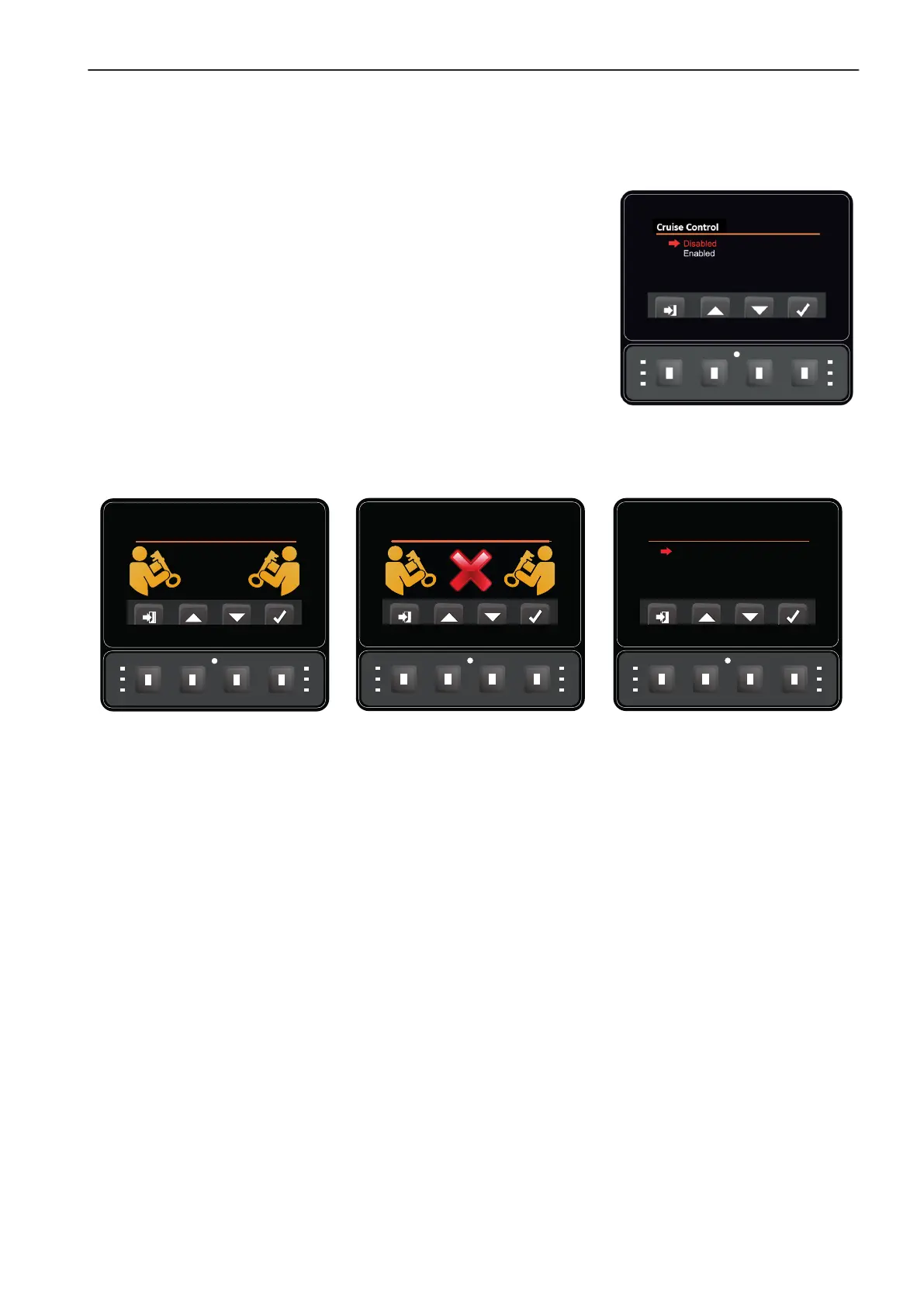 • Press and release the Cruise Control switch. Note in this scenario the machine will come to a stop.