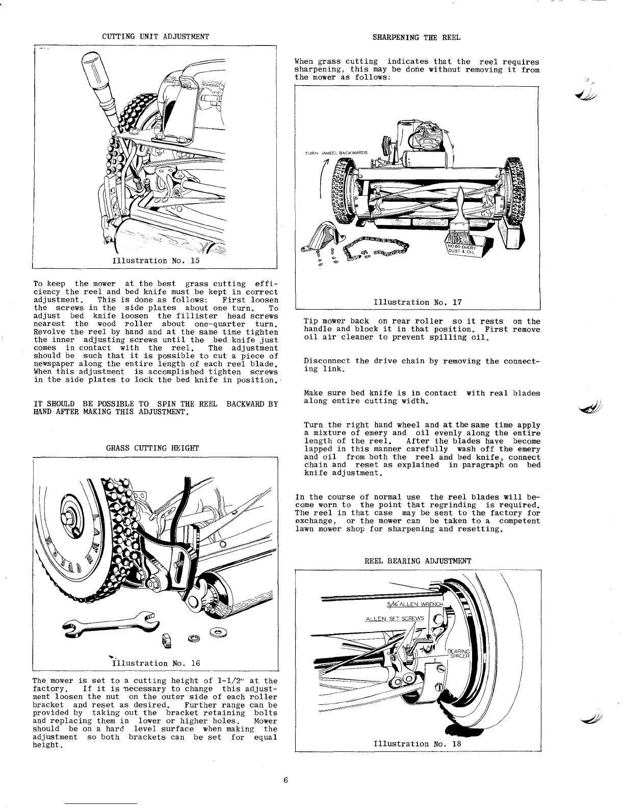 Jacobsen Lawn Queen 21'' - CUTTING UNIT ADJUSTMENT; SHARPENING THE REEL; GRASS CUTTING HEIGHT
