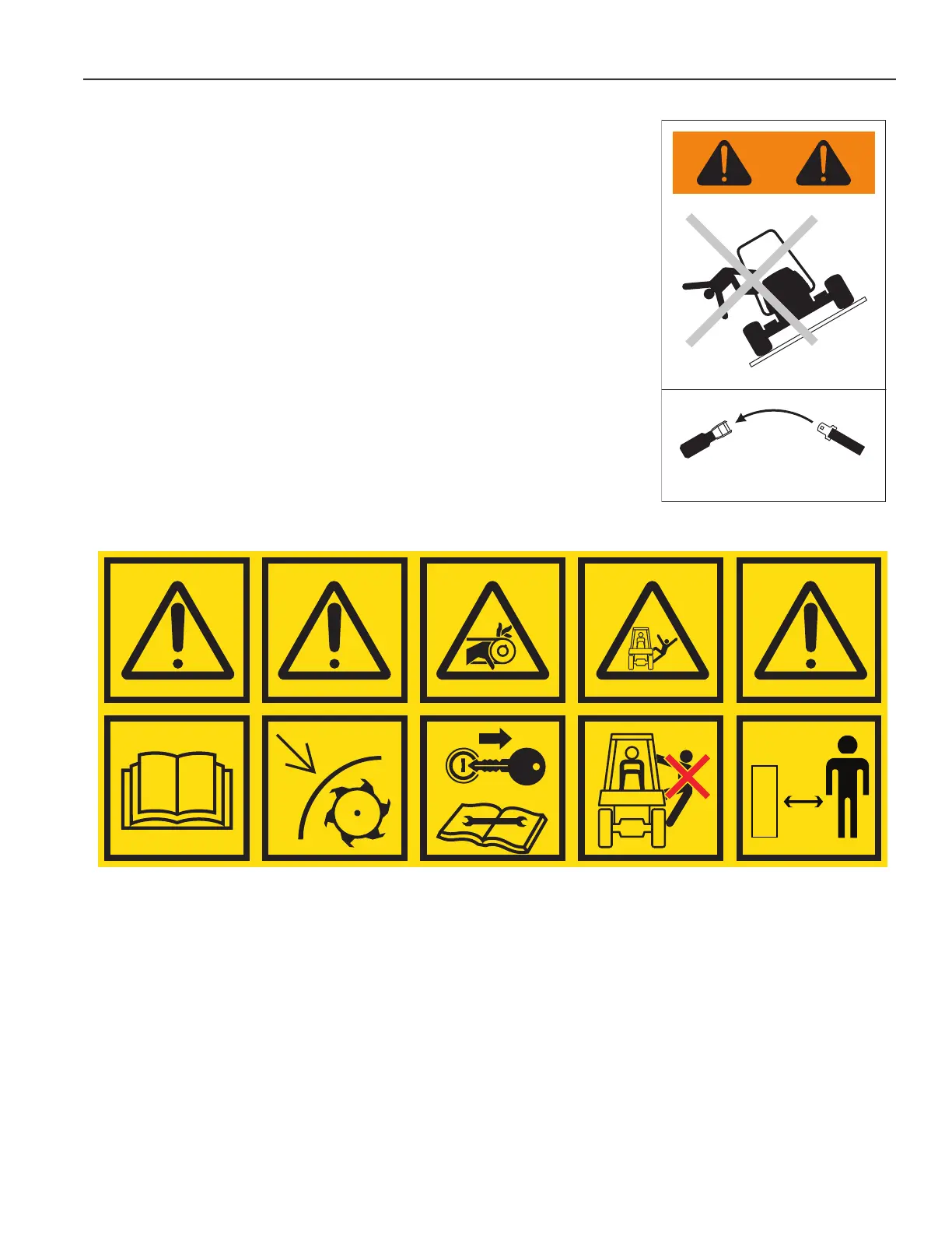 • Before you clean, adjust or repair this equipment, disengage all drives, engage the parking brake and stop the