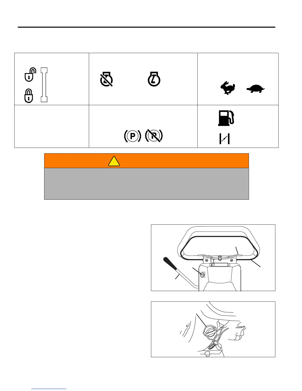 situación y uso de todos los controles y marcas antes de operar este cortacésped.
