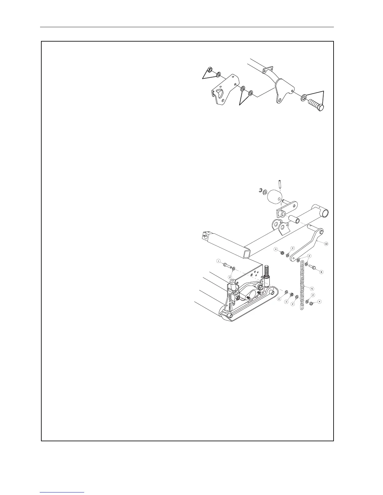 5 Připevněte řetěz (5) k ramenu (12) pomocí