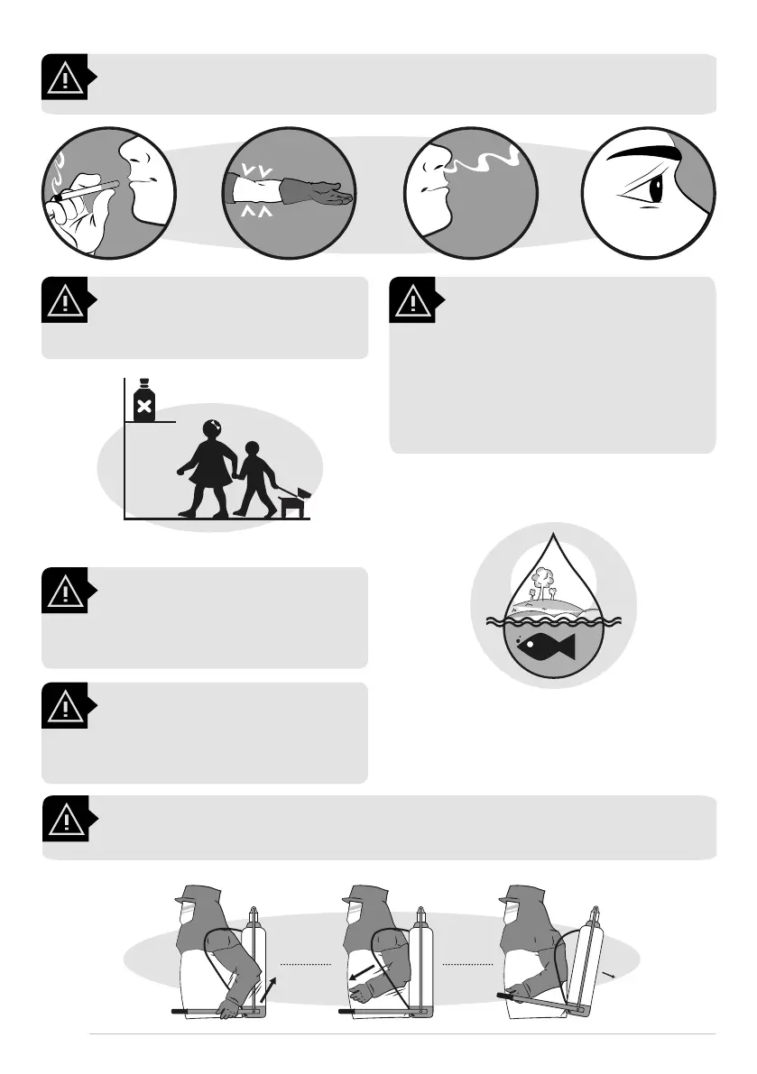 No coma, beba o fume mientras esté pulverizando. Grave riesgo de envenenamiento.