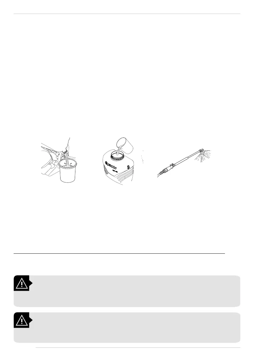 esteja baixo. Assim que o bico parar de pulverizar, pare o motor e a bomba. Caso contrário o equipamento poderá ser danicado.