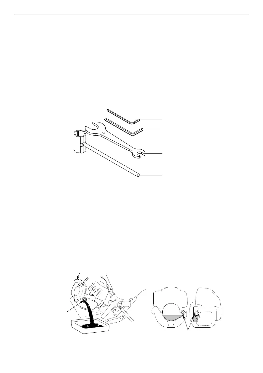 c. Retire a tampa de abastecimento de óleo e esvazie o óleo no recipiente de óleo inclinando o motor em direção ao gargalo de