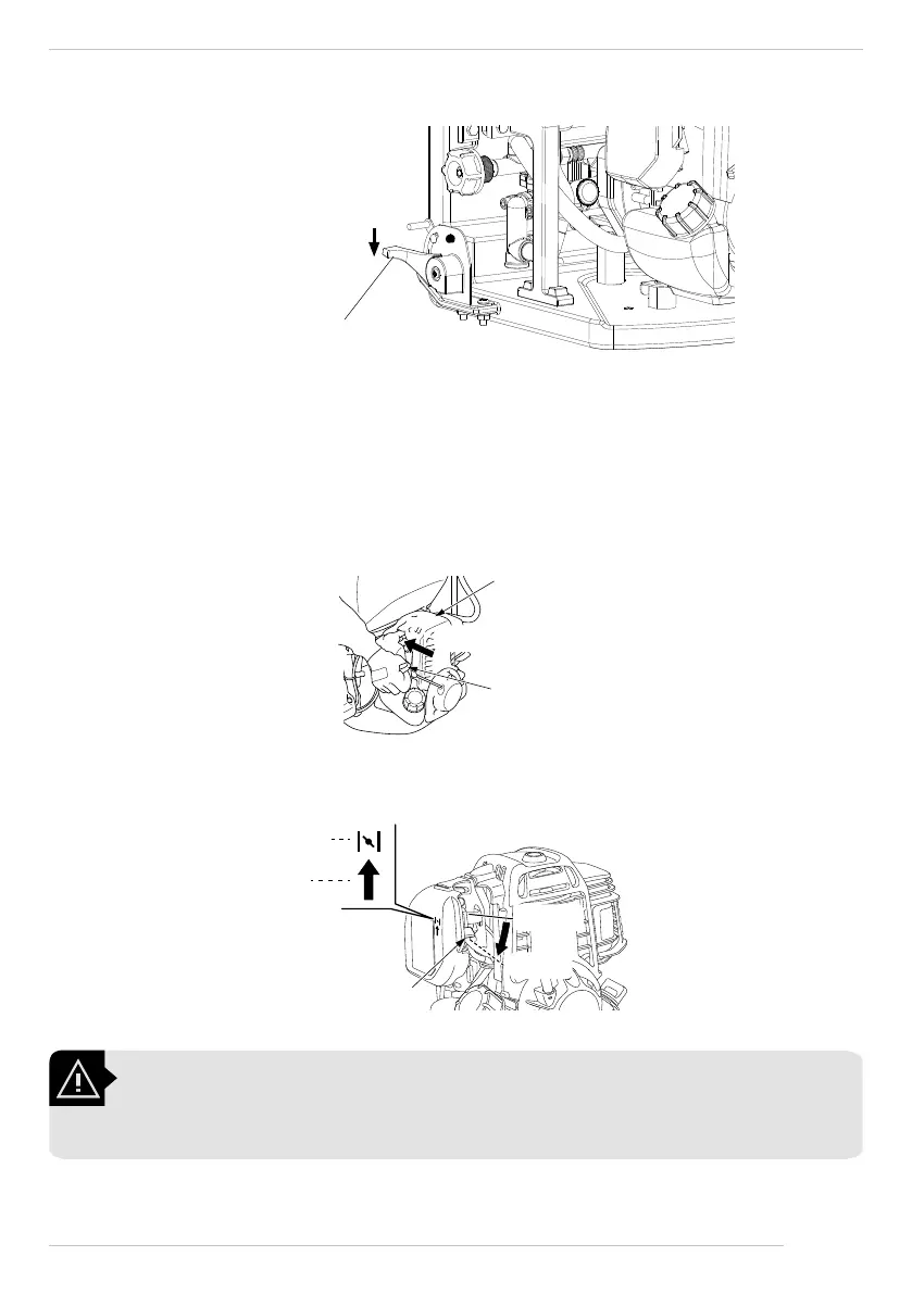 6. Arme bien la tapa superior del motor o tanque y tire el puño de arranque levemente hasta que sienta resistencia y, enseguida,