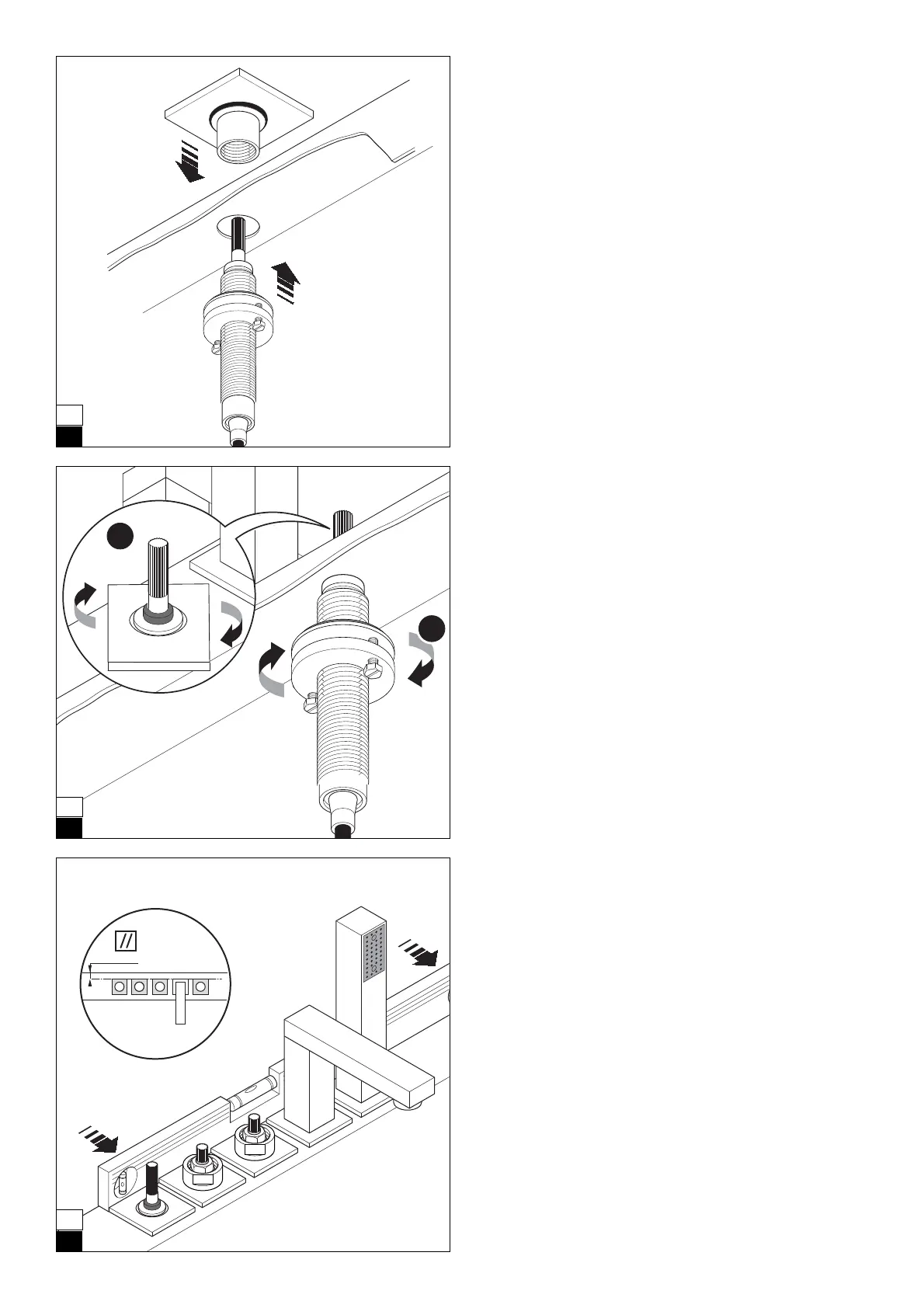 26) (1) Fissare il comando colonna al bordo vasca, av-