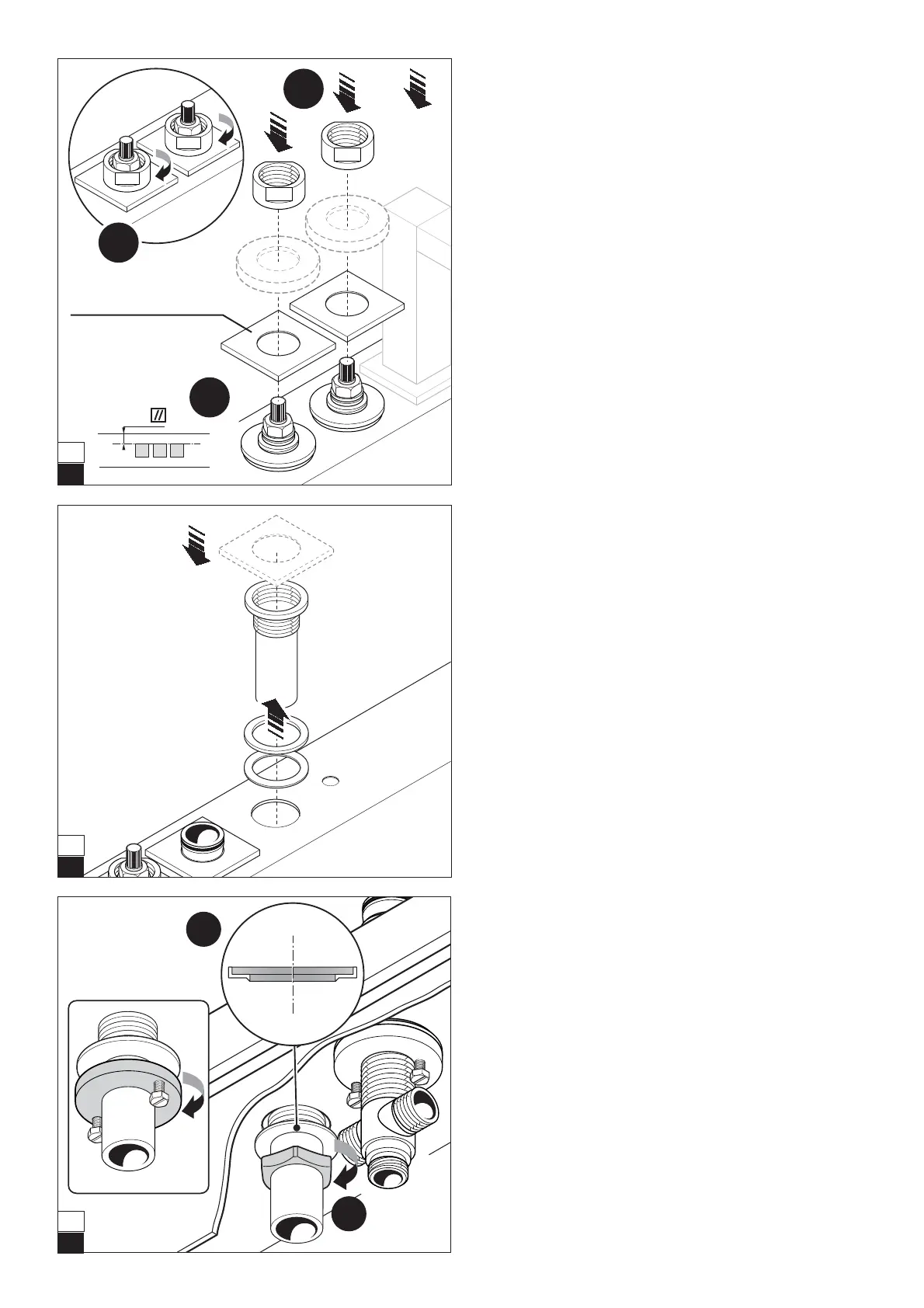 9) Da sotto il bordo vasca, applicare un’altra guarnizione