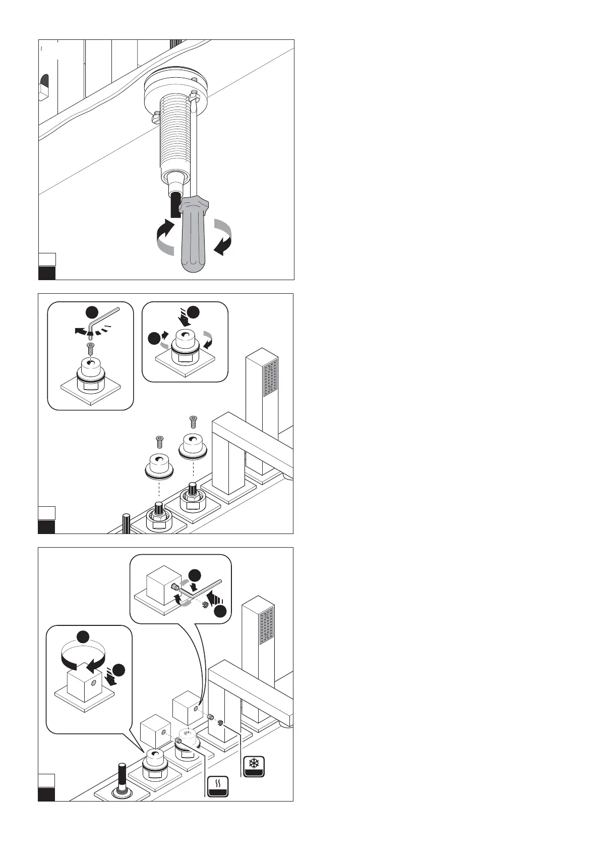 the inside of the tub; (3-4) check that the knobs are parallel to the