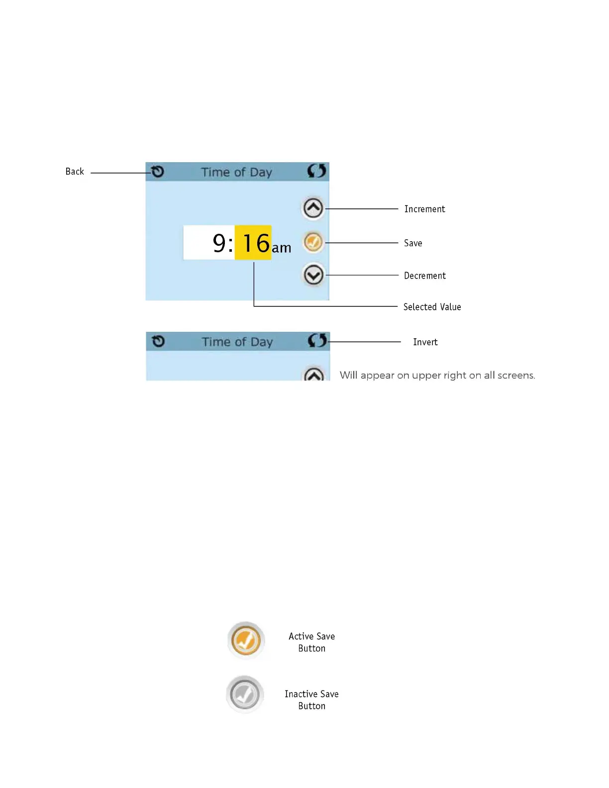 The Back buon is on every screen except the Main Screen, the Priming Mode Screen are a