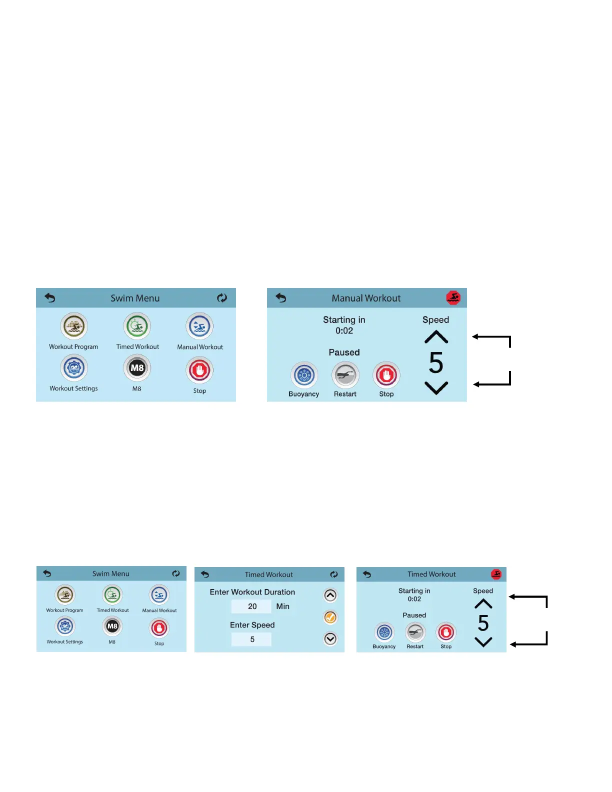 duraon and inial workout speed before progressing to the workout screen. Users can do