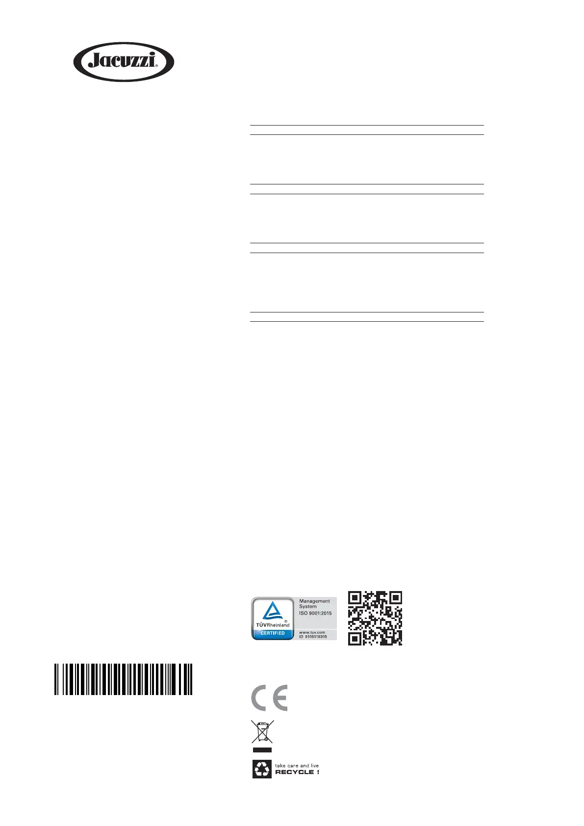 The data and characteristics indicated do not oblige Jacuzzi Europe, who reserves the right