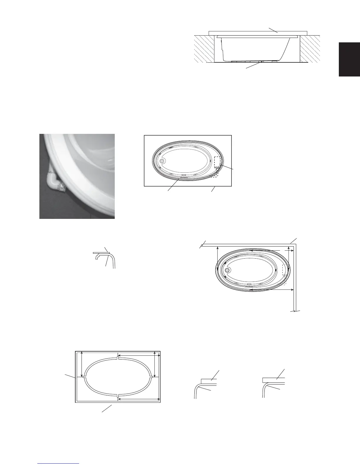 NOTE: On pump/motor side of bath, the counter should extend a minimum of 4" (10,2 cm) past the outer edge of bath, in order