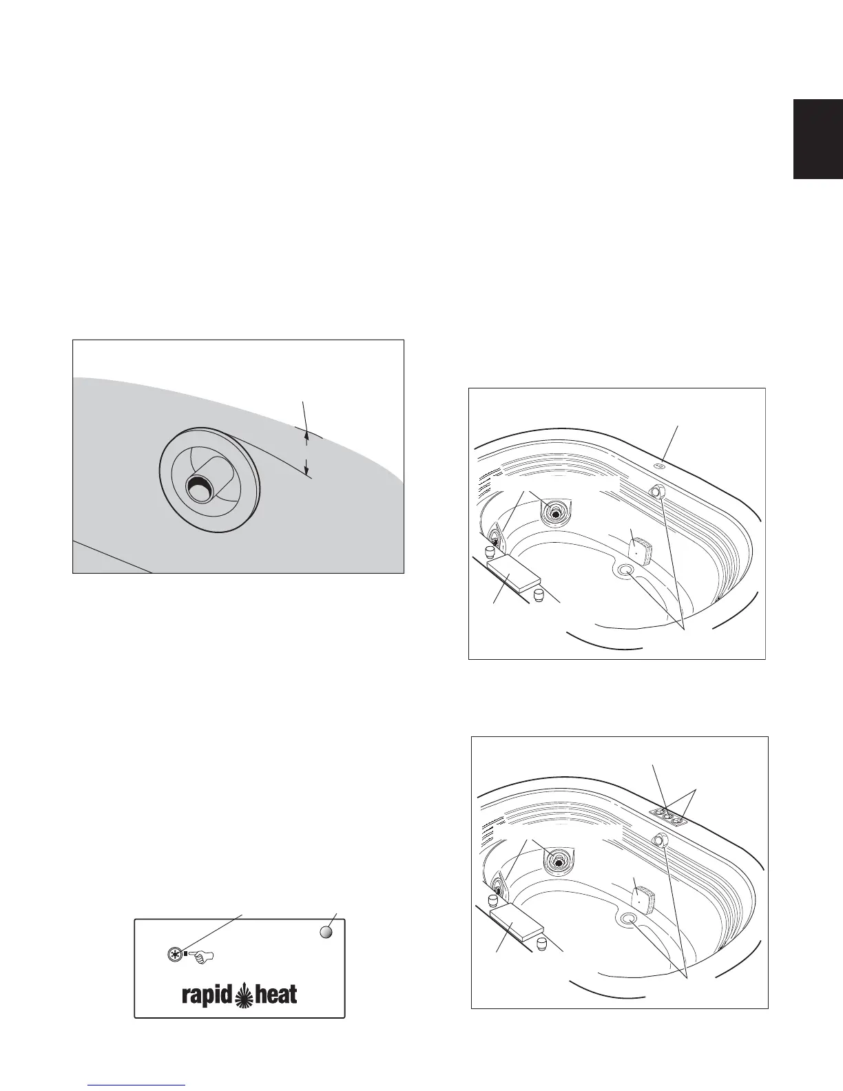 Close the drain and fill the bath until water is at least 1" to 2" (25,4 mm - 50,8 mm) above the highest jet (see water line indicated in the