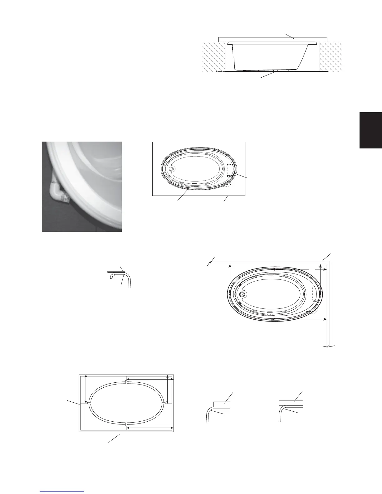 orilla exterior del baño, para vaciar el extender bomba/motriz de instalación de cañerías más allá del borde del baño.