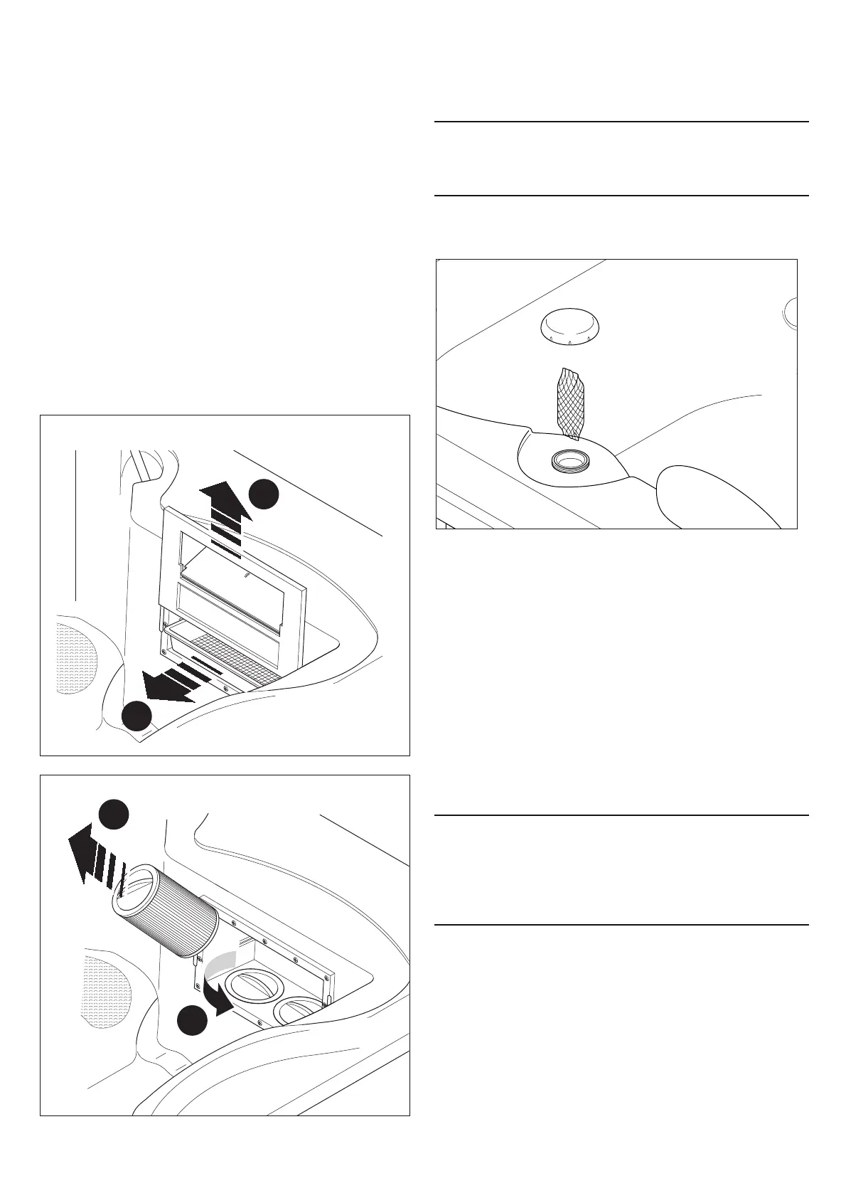 • To clean the filters, remove the skimmer cover, unscrew the fil-