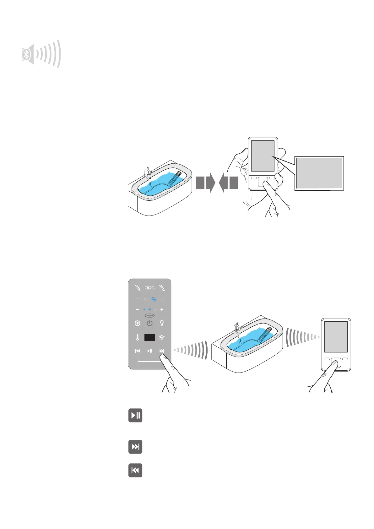 directly transferring them from a smartphone or an MP3 player to the tub's speakers