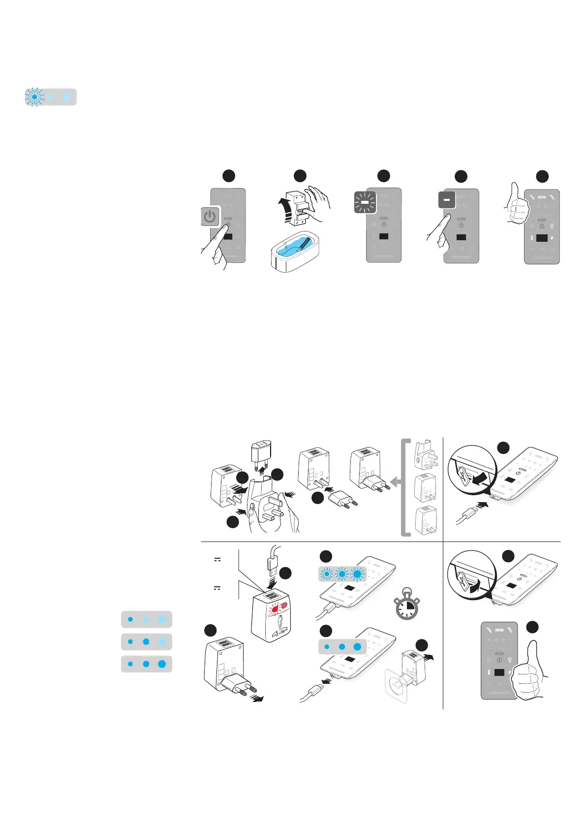 brancher l'alimentateur sur une prise de courant (une charge complète nécessite d'envi-