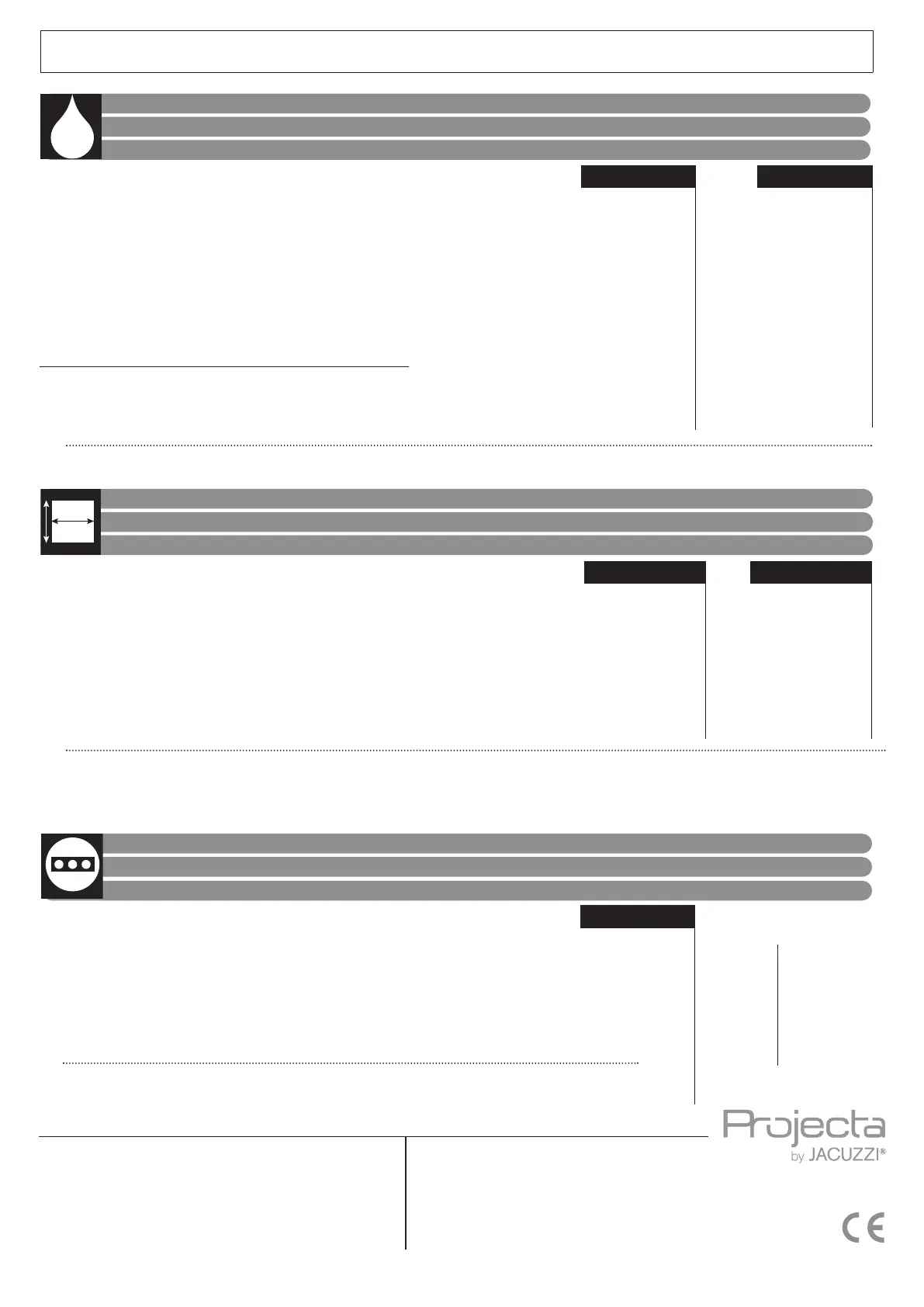 I dati e le caratteristiche non impegnano la Jacuzzi Europe S.p.A., che si riserva il diritto di apportare tutte le