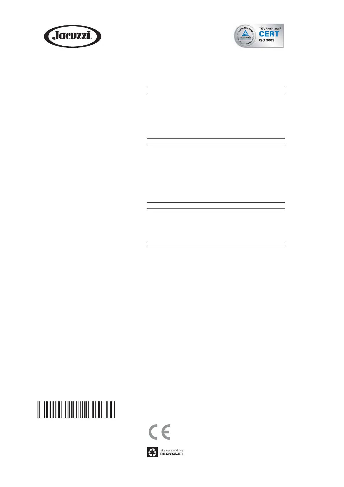 The data and characteristics indicated do not oblige Jacuzzi Europe, who reserves the right