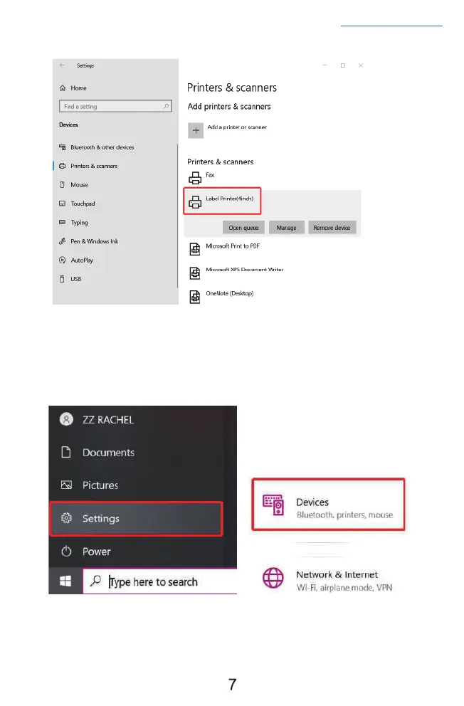 a.(Keep the printer and computer connected with USB cable). Click' Setting' >' Devices' >