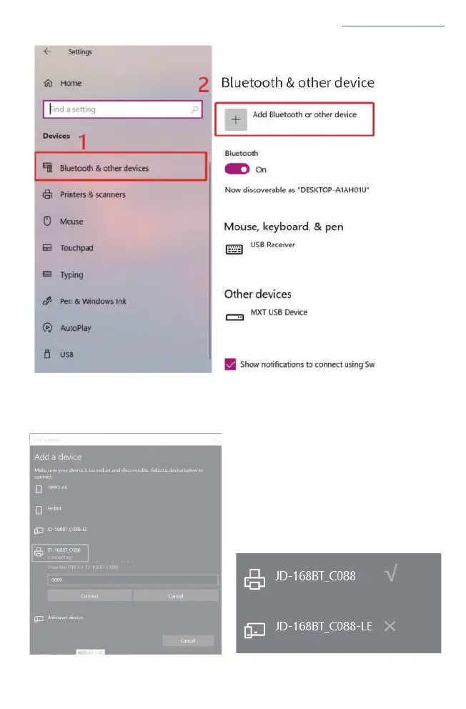 b.Find Bluetooth printer named 'JD-168BT_XXXX', and input PIN 0000, then connect.