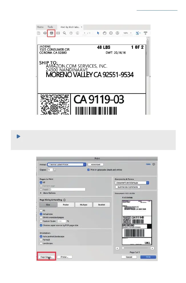 Before printing. please make sure the size of thermal labels you load, and the size settings on