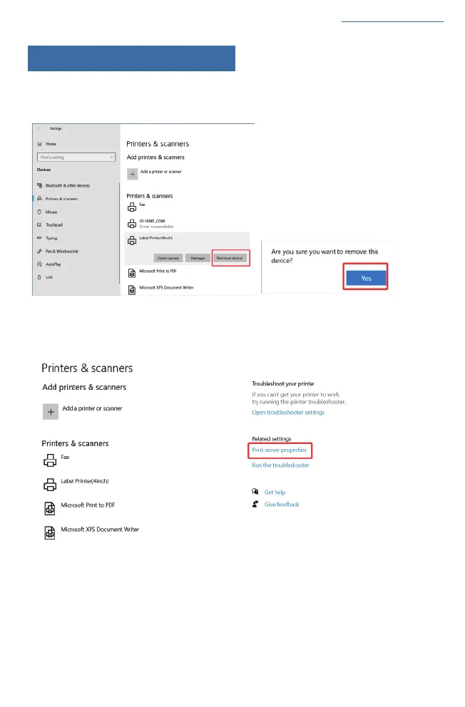 'Device '>>'Printer & Scanners' >>'Label Printer(4inch)'>>'Remove device'