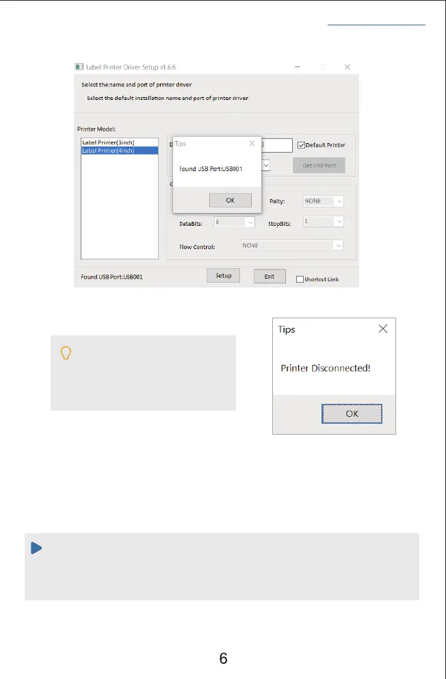 'Label Printer(4inch)' . Click ' Manage' to print a test page and print labels successfully, that means