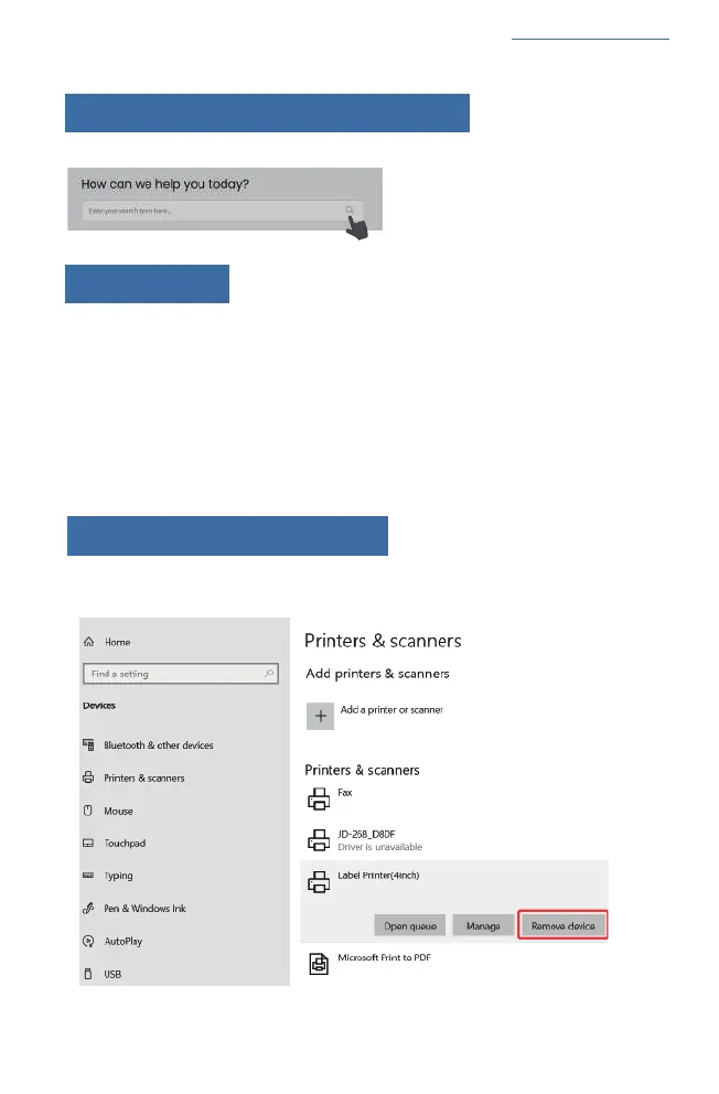 'Device '>>'Printer & Scanners' >>'Label Printer'>>'Remove device'