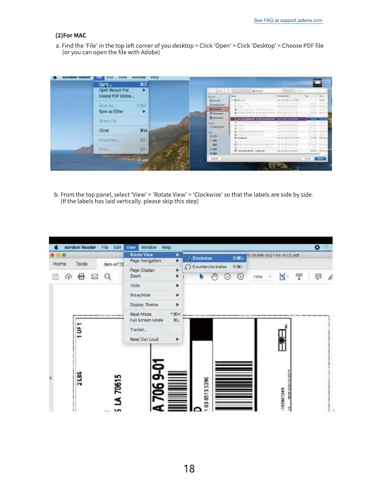 See FAQ at support.jadens.com