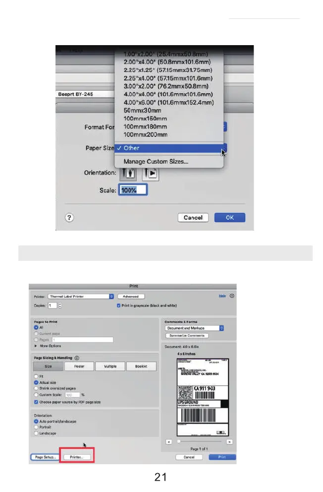 If there is no suitable size, please click 'manage custom sizes', input the width and height, then click 'ok'.