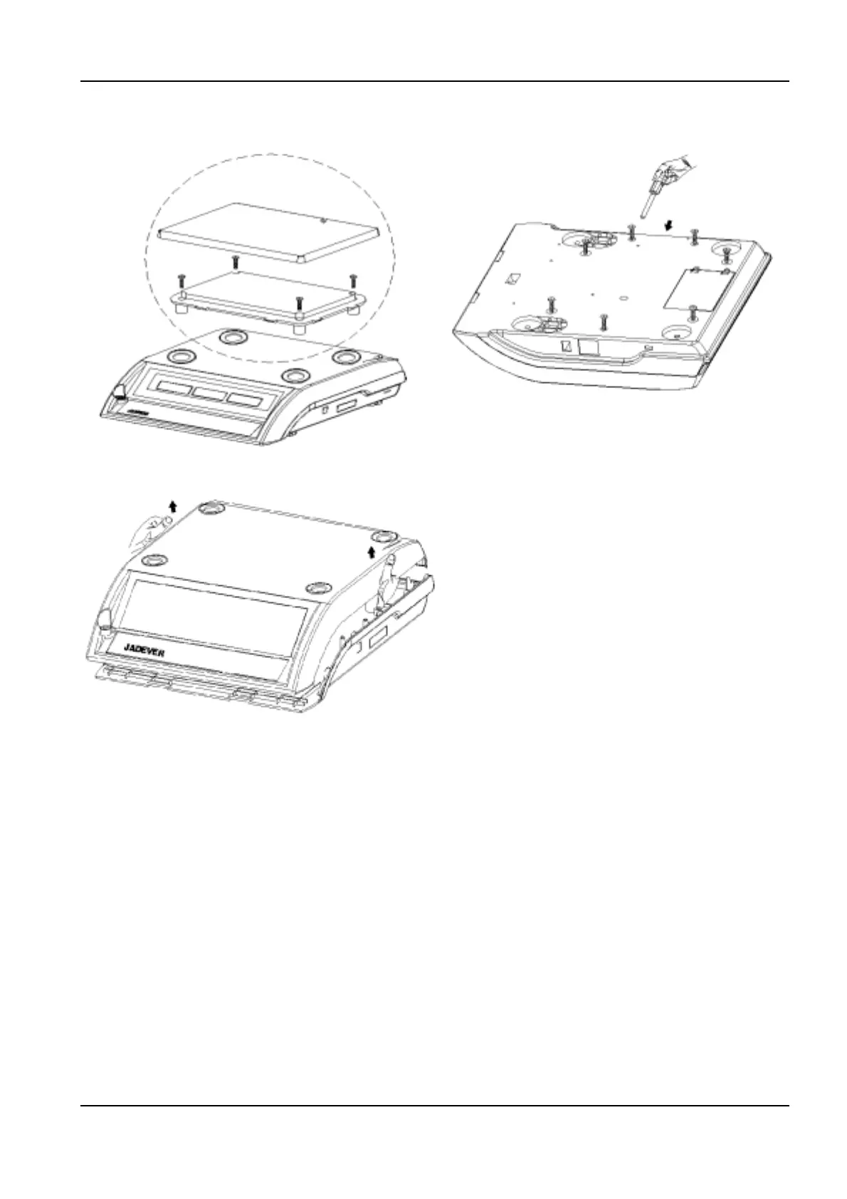 4. Loosen and remove the four screws that fix the load cell lower supporter to the scale