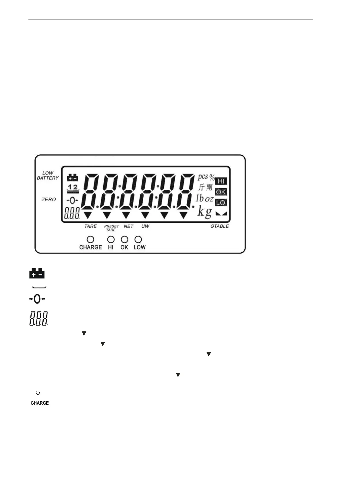 TARE Symbol “ ” points at “TARE” when manual Tare action is done.