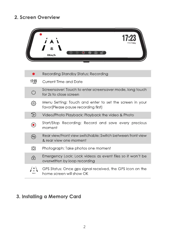 JADO G840S - Device Screen Interface and Icons; Menu Access; Camera View Switching; Emergency Video Lock