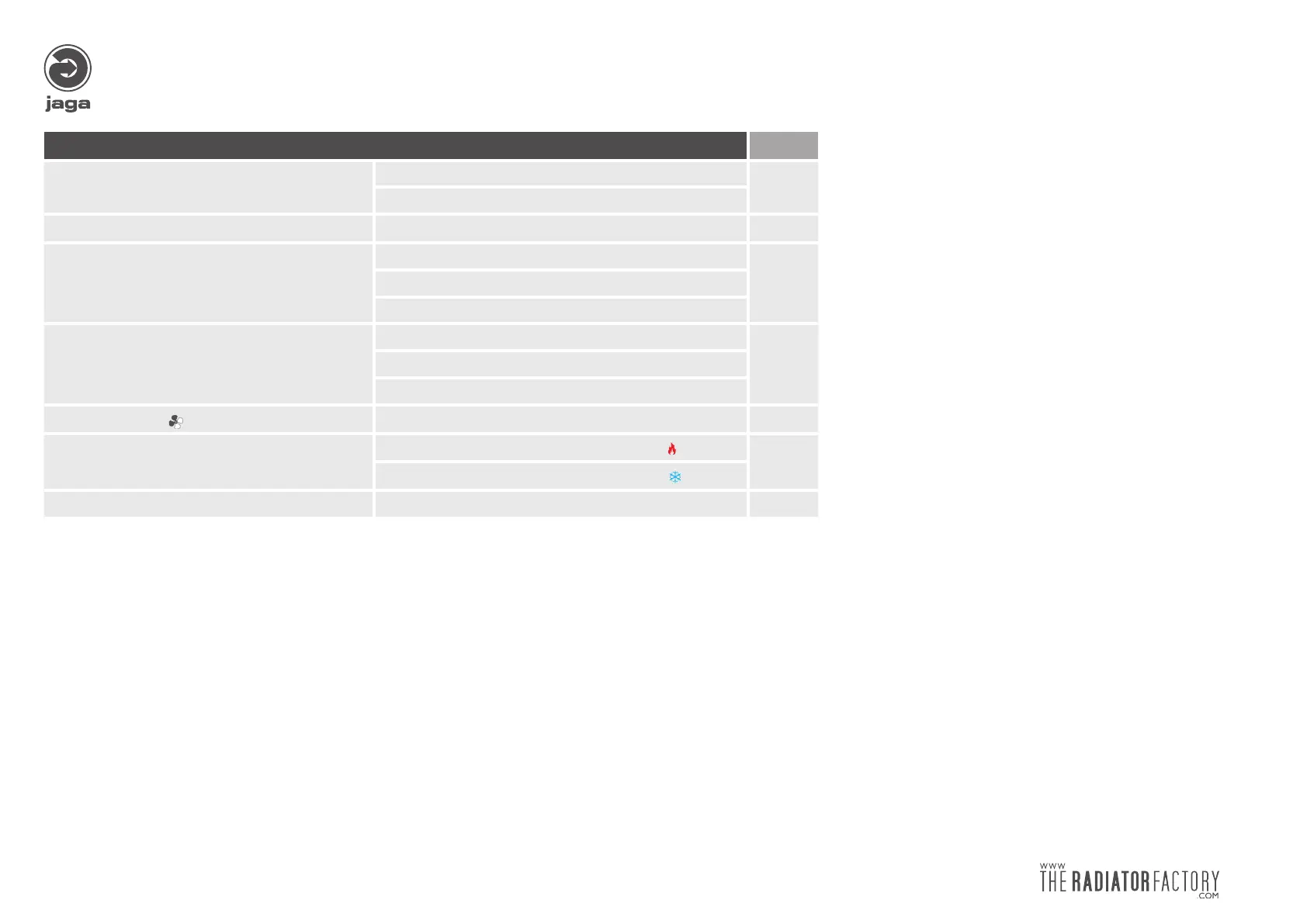 Table 3: adjusting max. water temperature cooling