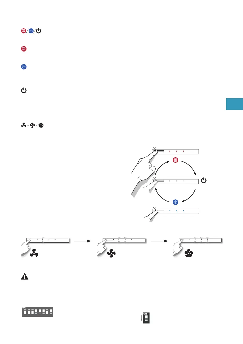 Auto-change-over. L’appareil démarre à la dernière vitesse sélectionnée (, ou ), dès que la température de l’eau <