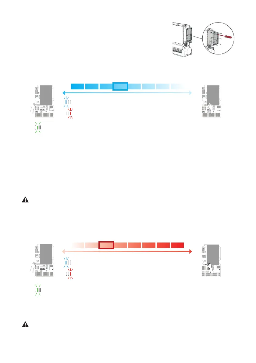. Start einstellen: Drücken Sie die [-] Taste der Platine bis die blaue LED x blinkt.