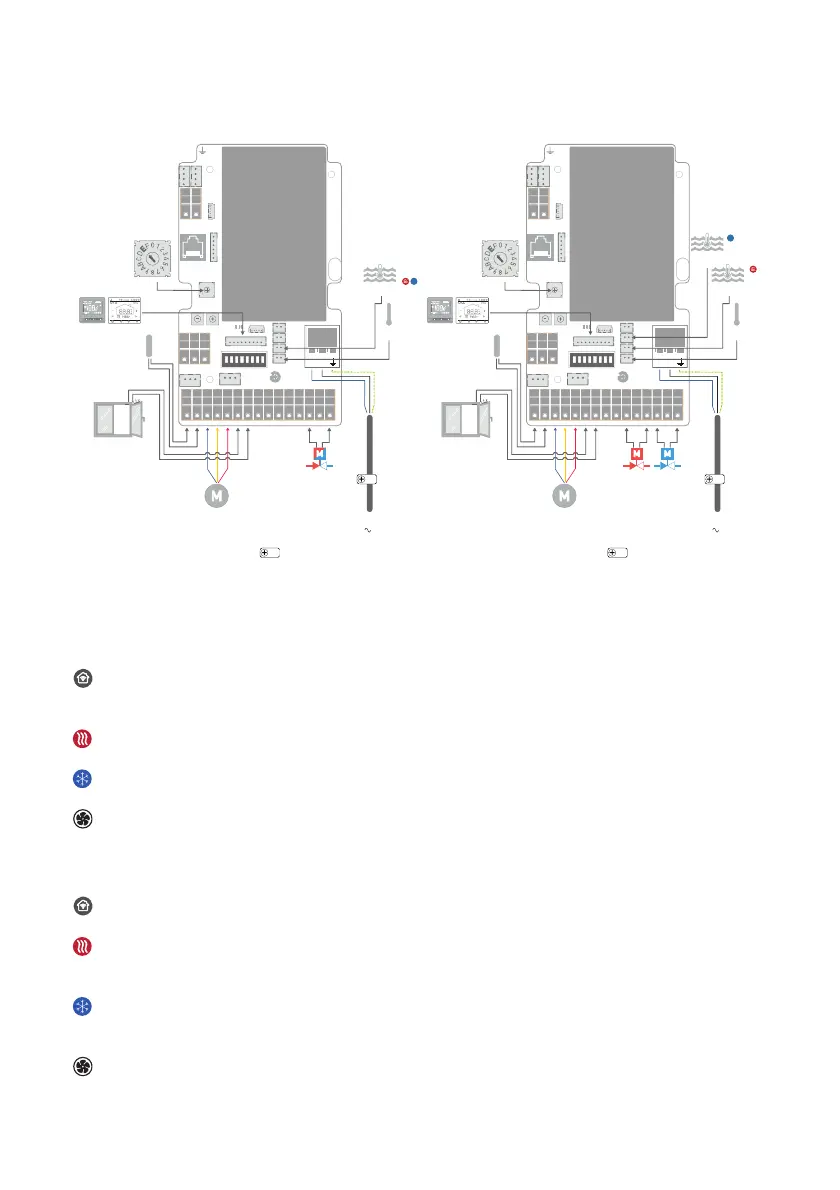 Thermal actuator [H] is connected and opens when the room thermostat is in ‘cooling’ mode.