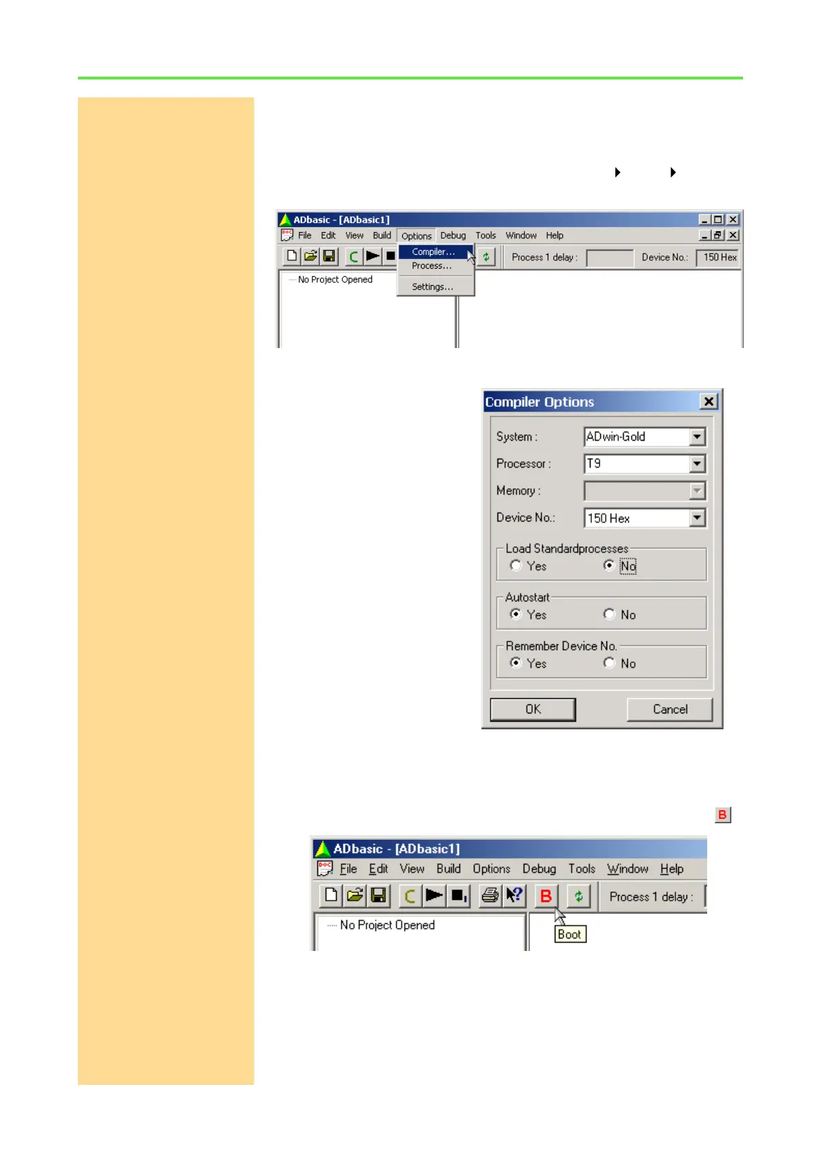 Booting Start ADbasic and boot the ADwin system by clicking on the boot button .