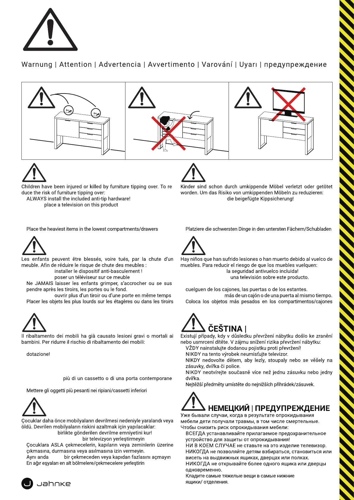 • Erlaube Kindern NIEMALS, auf die Schubladen, Türen oder