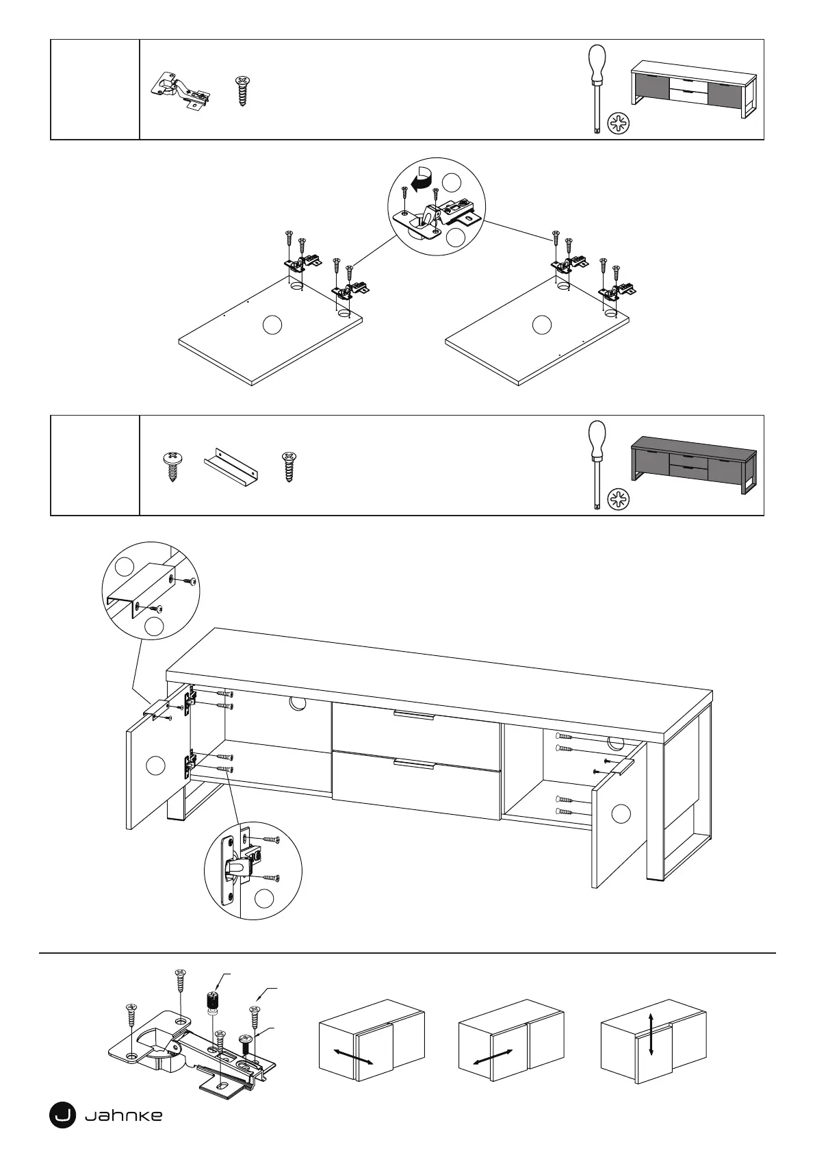 Jahnke LOOP TV 150 - Step 12: Hinge Installation; Step 13: Door Alignment