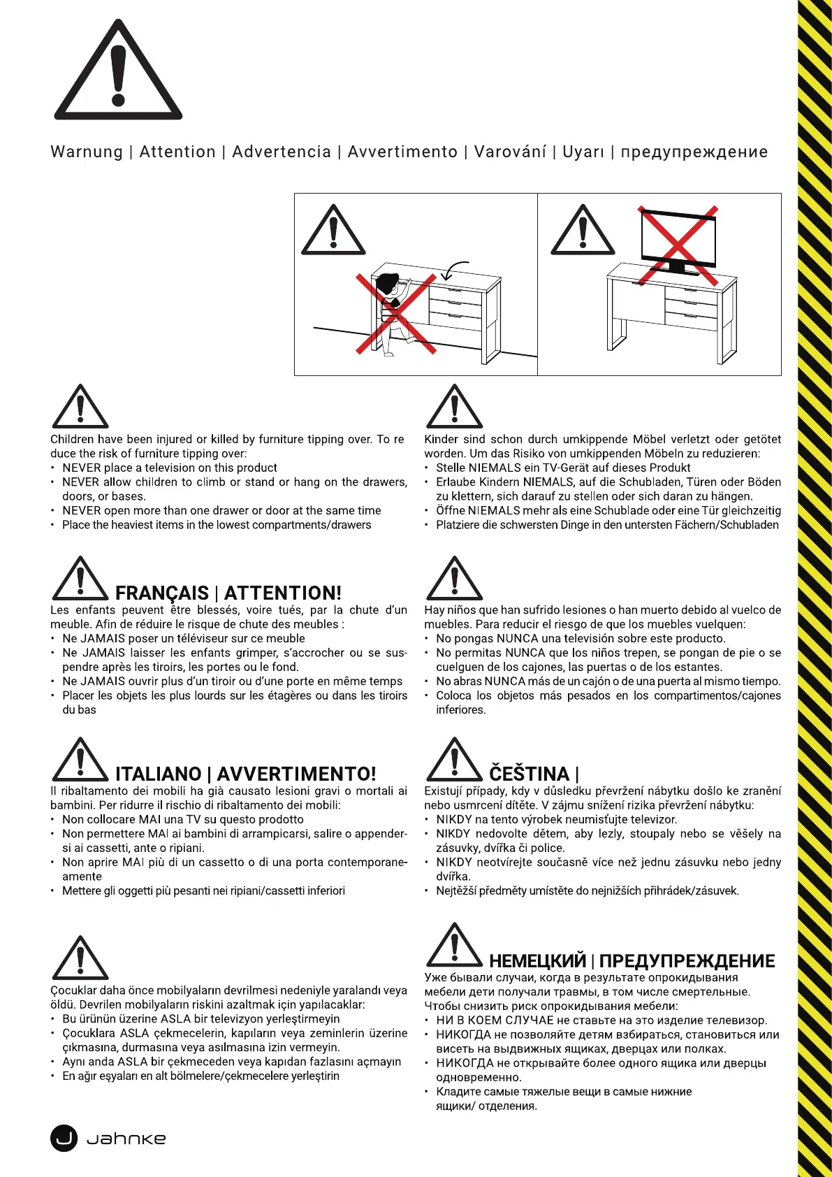 Jahnke LOOP TV 150 - General Safety Warnings; Furniture Tipping Hazard