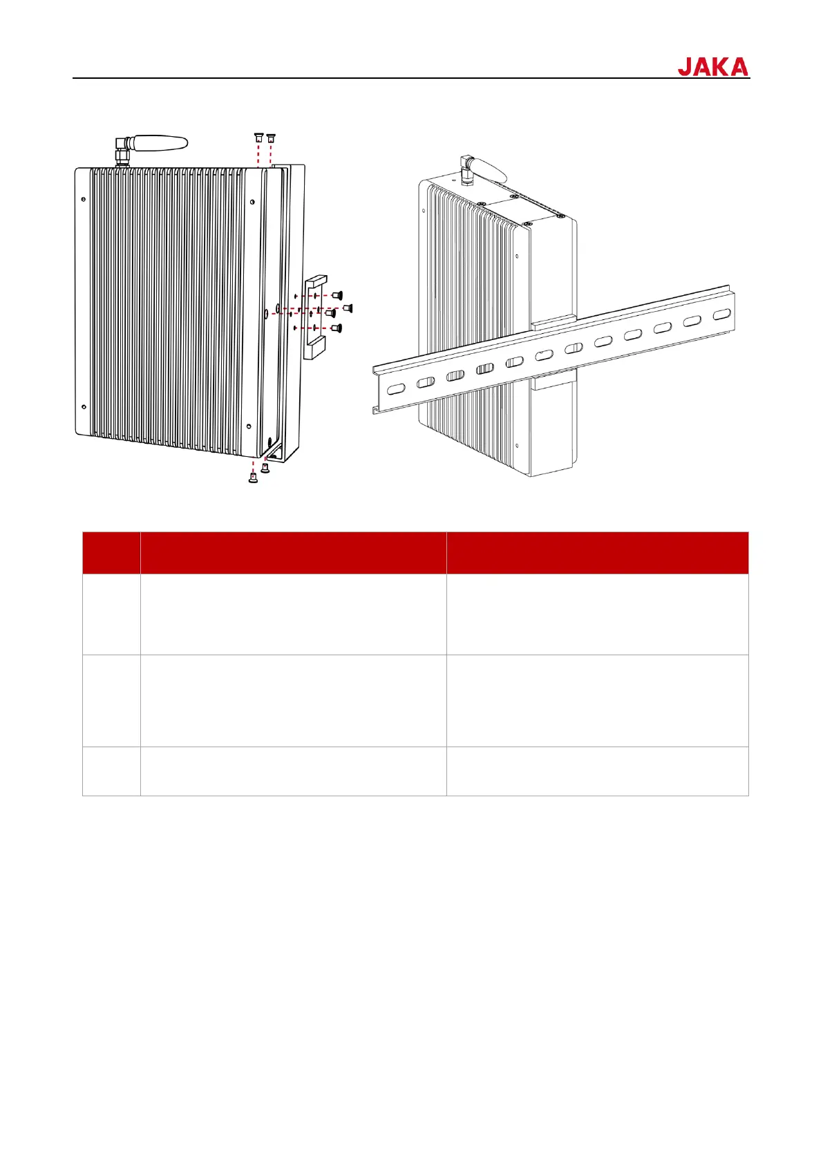 guide rail, please contact the JAKA technicians to acquire these accessories. The mounting steps are as follows: