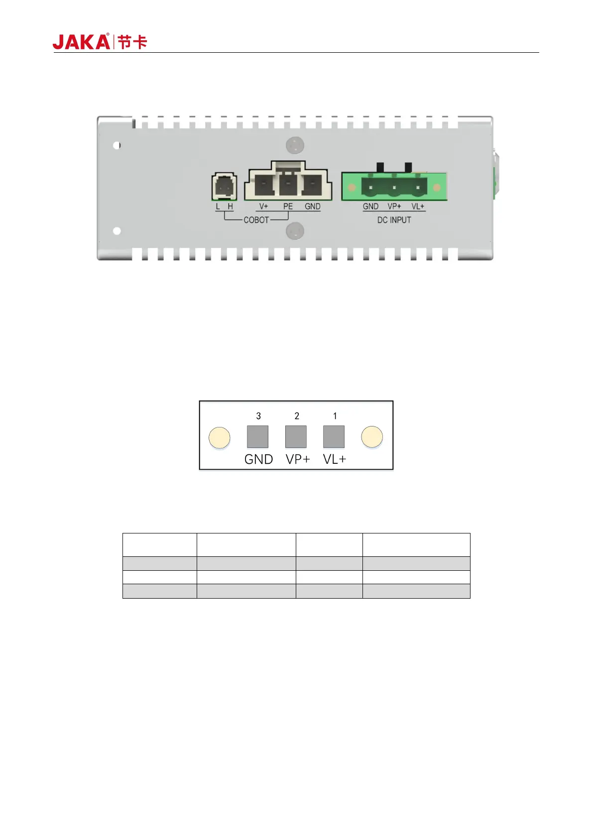 The power interface is divided into two power circuits: logic power VL+ is the pin of the internal logic power