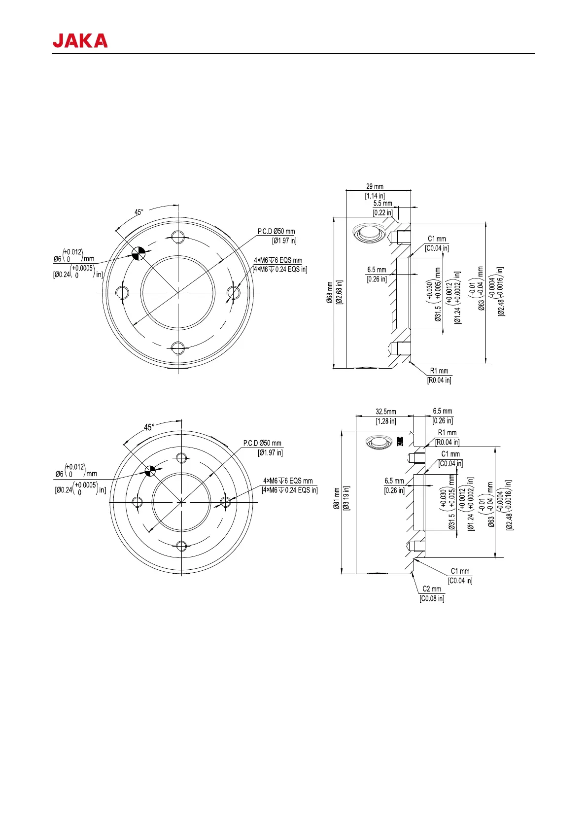 The JAKA Zu series robots tool flange have four M6 screw holes, which can be used to connect the end-effector