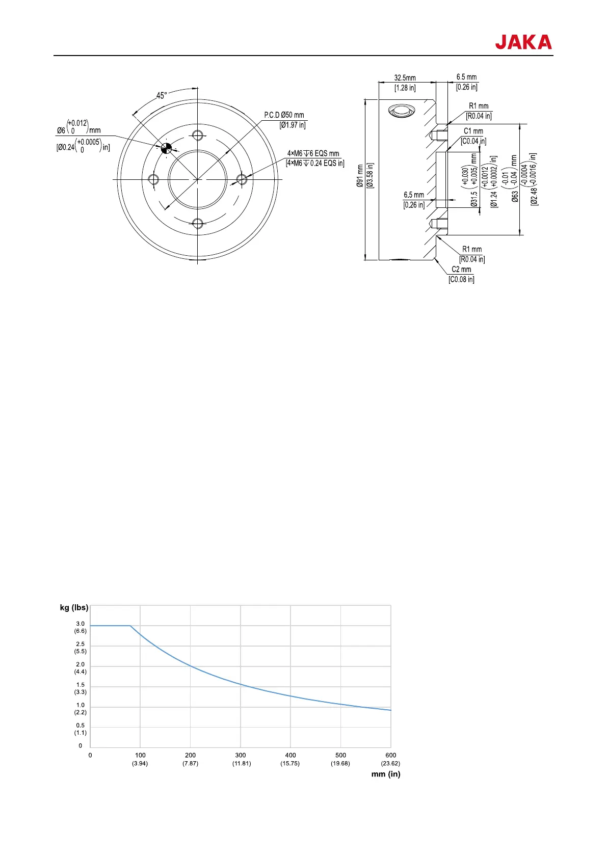 is related to the distance between the center of robot end flange and the payload centroid. Figures below show