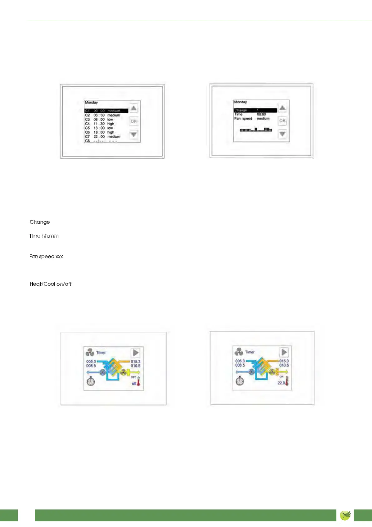 - Time hh.mm: set the starting time of the current time period by selecting this line and pressing OK: the arrows keys increase (up arrow)