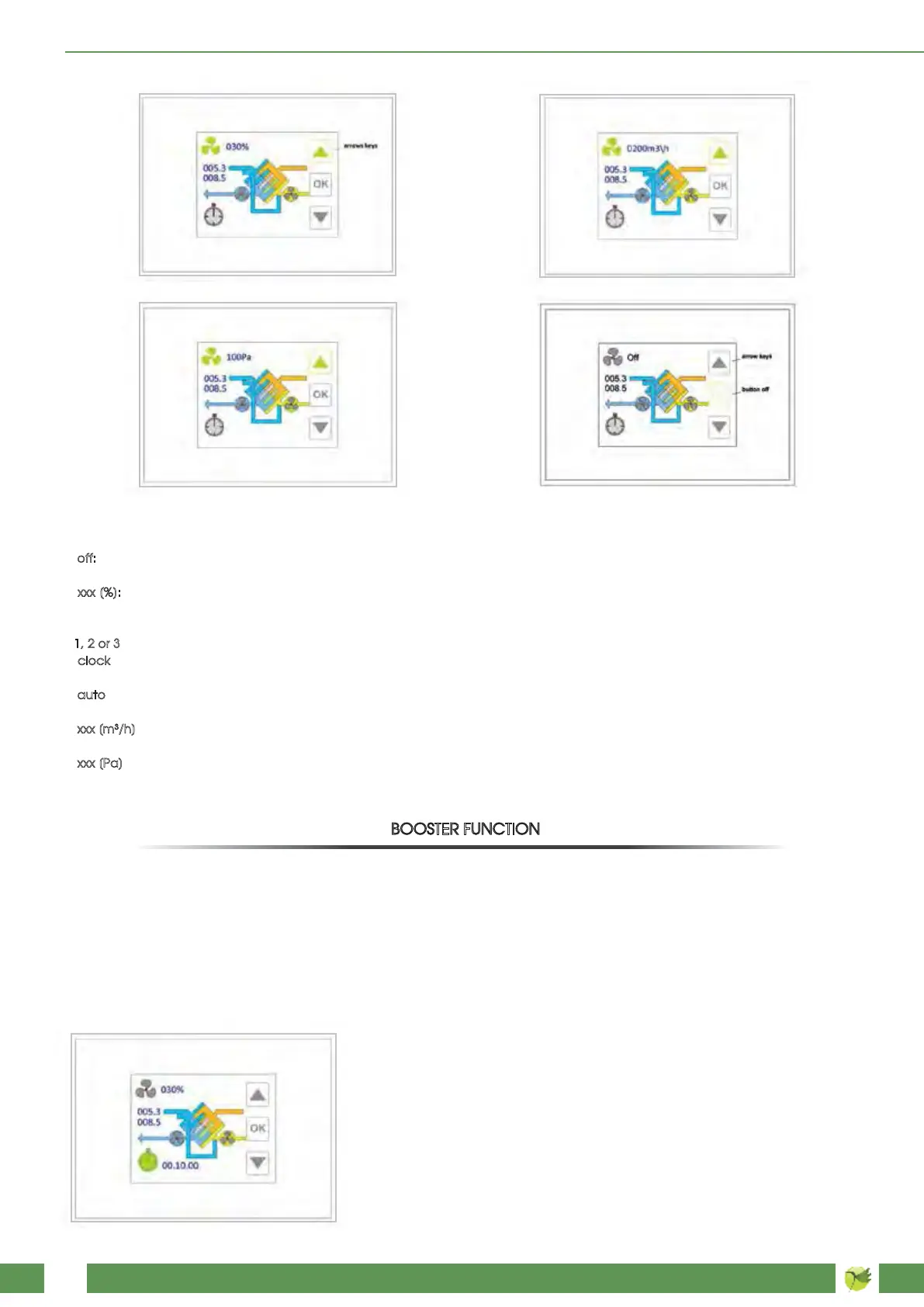 can be selected, in which the unit can run at the maximum power. The booster function has the priority over any other fan speed