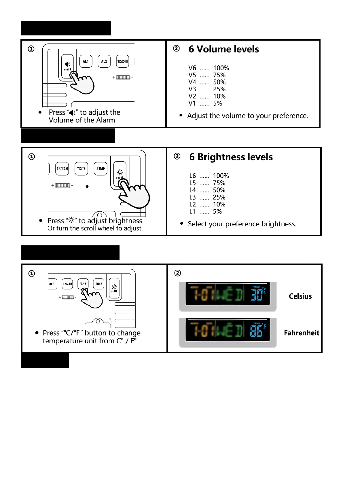 ②To turn off the snooze feature, simply press any button on the back twice. This will stop the flashing of