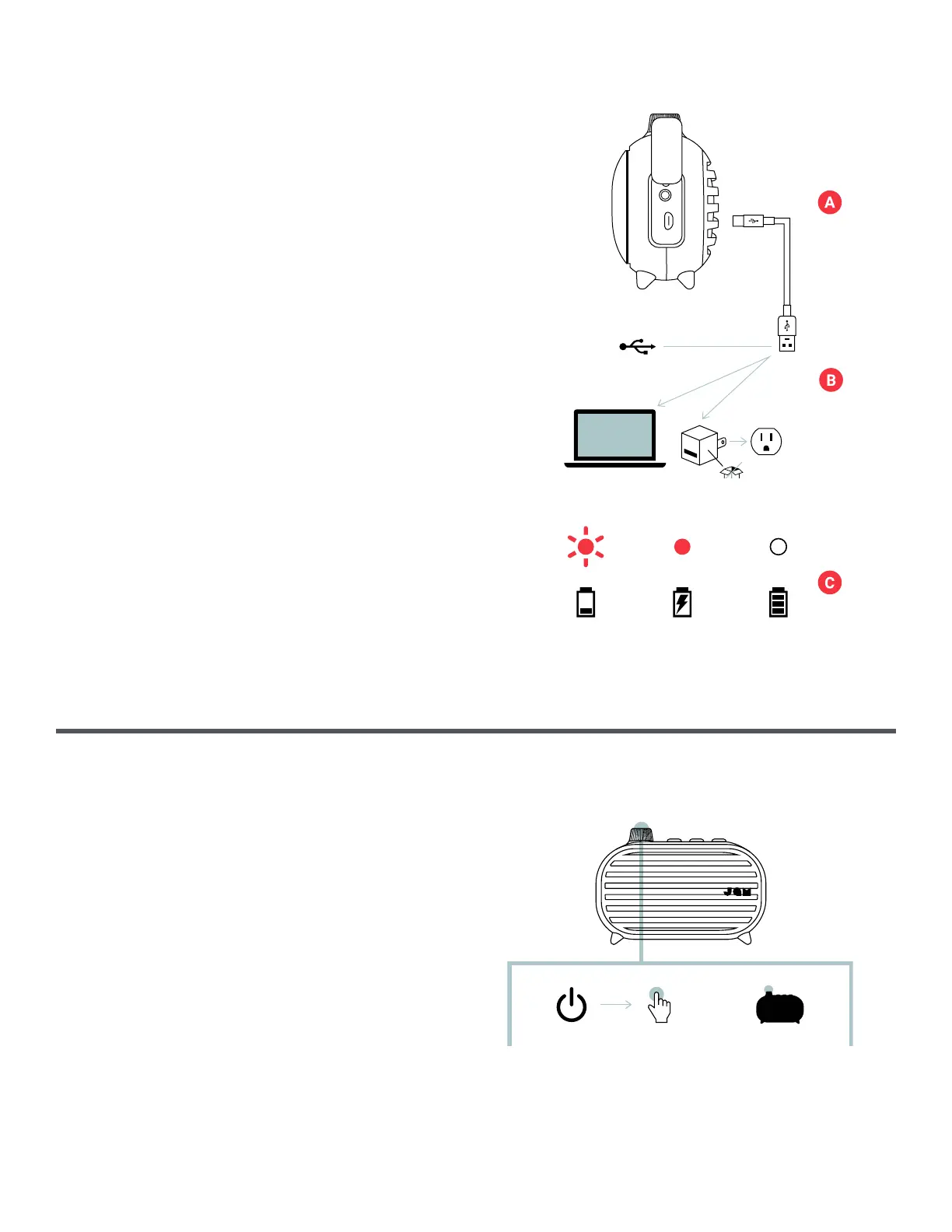 C – 充電時、揚聲器頂端的 LED 燈會持續亮紅